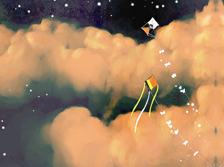 小囡囡就這么仰望著那個(gè)高掛在天上的風(fēng)箏,她也不去追,不去搶。因?yàn)榭粗L(fēng)箏還在天上,心里就還有夢(mèng)。如果把它拿在手上,可能,她就再也不會(huì)做夢(mèng)了。